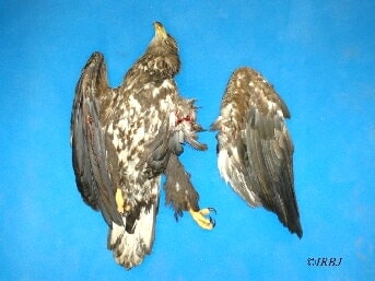 ここ数年風力発電機が急増し、鳥類が衝突する事故が多発しています。2025年8月現在、北海道では103羽の海ワシ類(オオワシ5羽、オジロワシ98羽)が風力発電機のブレードと衝突(バードストライク)して収容されており、その多くが死体となって発見されています。また、研究所で独自に行っている現地調査(パトロール)では海鳥や希少種以外における事故発生も確認しており、報告・回収される被害鳥はごく一部であり、実際の事故発生数はさらに大きいものであると考えています。日本国内だけでなく、海外の風力発電が盛んな地域においても多くの鳥類が衝突し、死亡している事が問題となっています。
