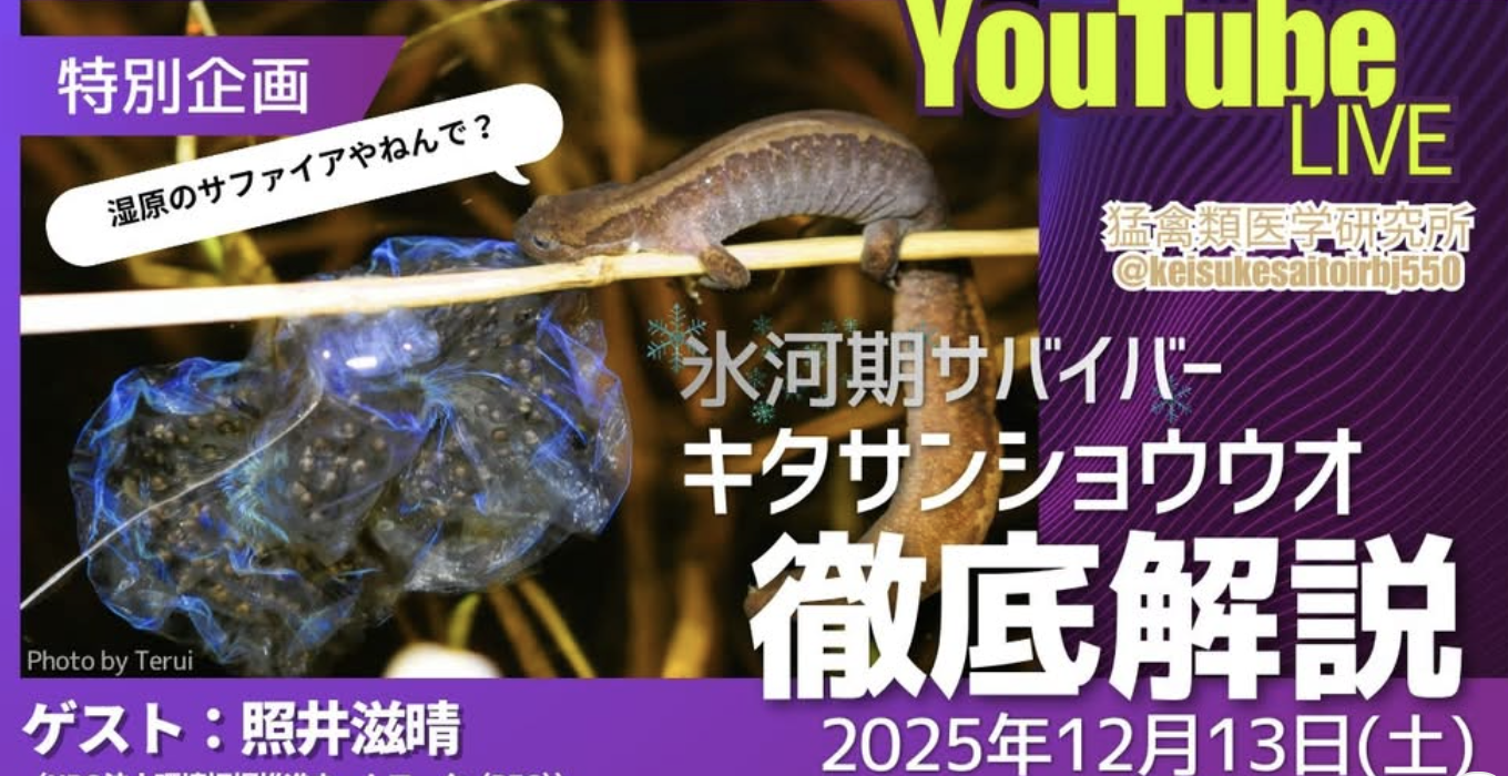 特別企画!氷河期サバイバーキタサンショウウオ徹底解説 ゲストに専門家をお呼びし、キタサンショウウオについて 深掘りしていきたいと思っています! 12/13(土) 20:00~ YouTube 猛禽類医学研究所齊藤慶輔チャ […]
