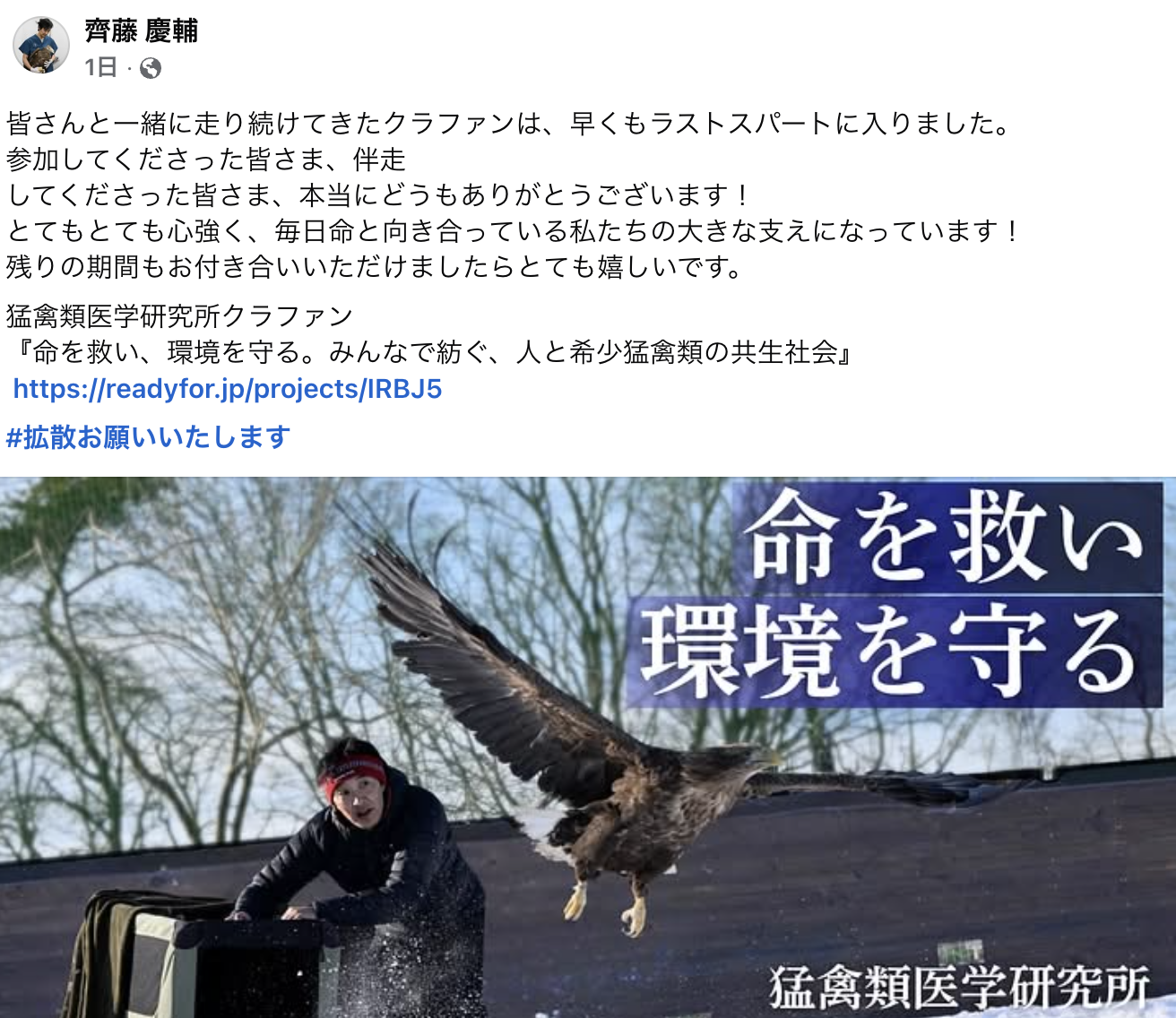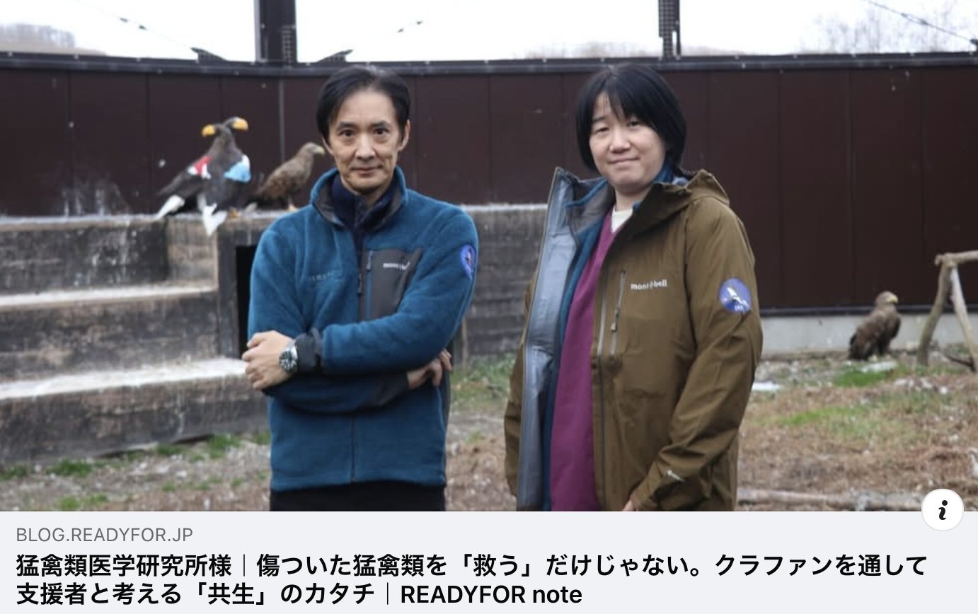 READYFORのnoteに私達へのインタビュー記事が載りました! 皆さん、ぜひご覧ください。 猛禽類医学研究所様|傷ついた猛禽類を「救う」だけじゃない。クラファンを通して支援者と考える「共生」のカタチ https:// […]