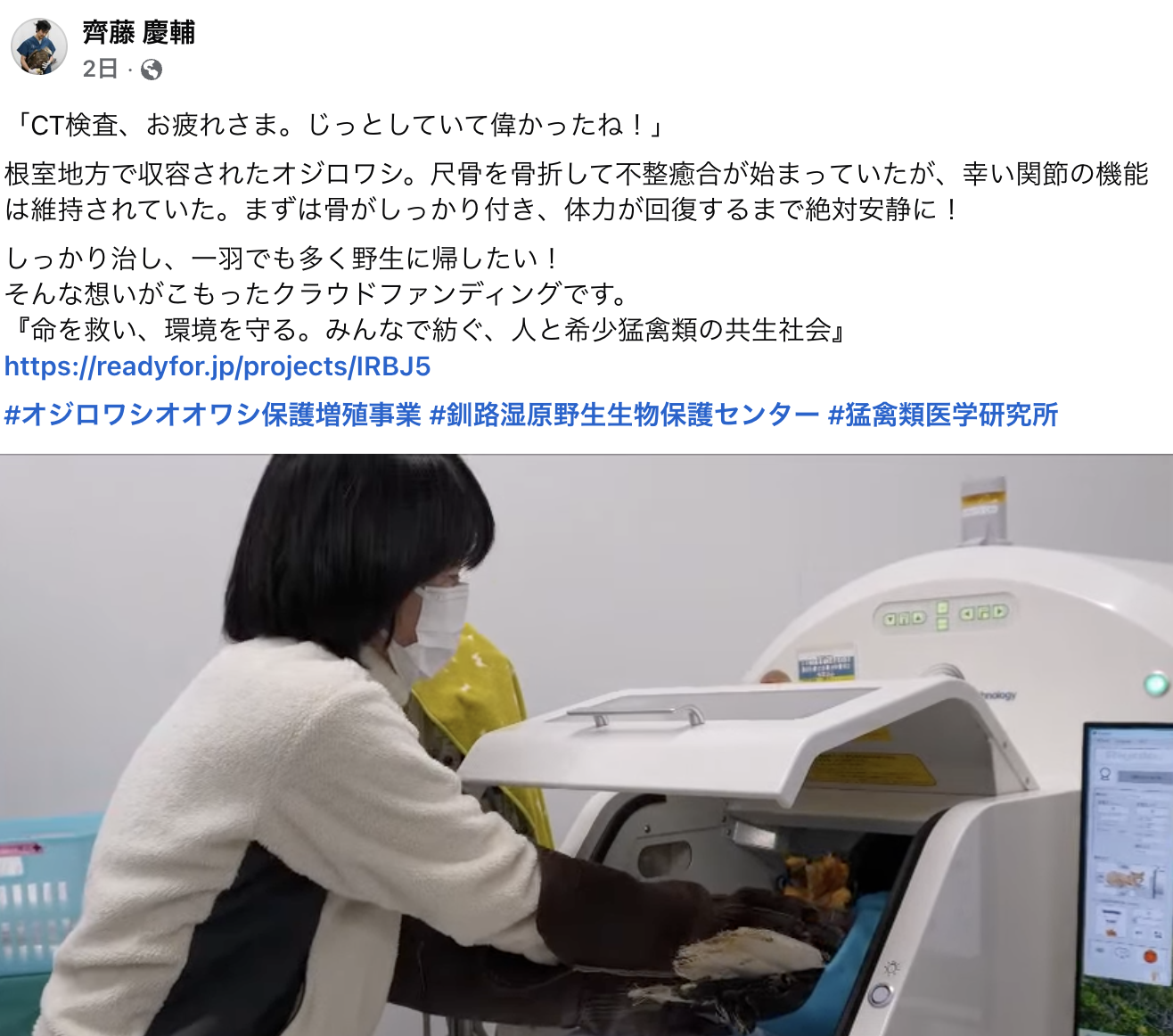 こちらは前回のクラウドファンディングで導入させていただきましたCTスキャン装置です。お陰様で敏速診断ができるようになり、救命率の向上につながっています。この活動は皆さまの想いをアンカーである獣医師や研究員が治療や保全活動 […]