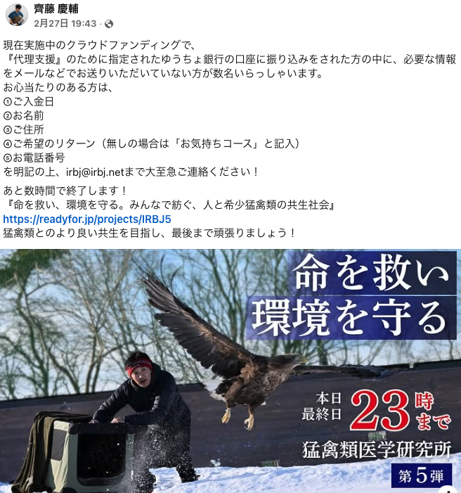 みなさんと一緒に走ってきたクラウドファンディングが無事終了しました。最後までお付き合いいただきまして、本当にありがとうございました。 私たちの予想を遙かに超えた参加者数と援助資金(資金参加)の大きさに言葉を失っております […]