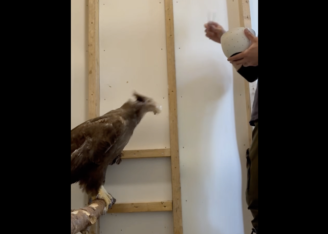 交通事故で上のくちばしを失ったオジロワシ “ベック”。人間の歯科医らと一緒に開発した人工のくちばし(義嘴)を使って生活しています。床に置かれた器から自分で餌を食べることもできますが、冬に向けてしっかり体重を増やしてもらう […]