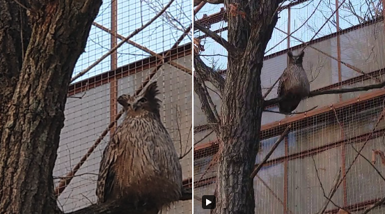 シマフクロウの耳のような羽 「羽角(うかく)」が ピコンと立っているのは、警戒のサイン ごめん だけど、良い反応 野生復帰を目指す個体にとって 人は警戒すべきものとして認識してもらわねばならぬのです