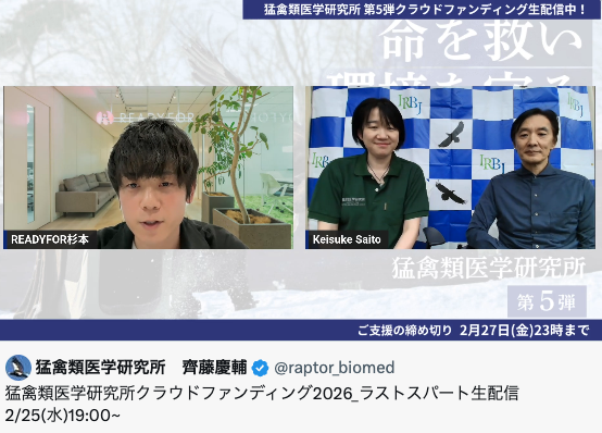 猛禽類医学研究所クラウドファンディング2026_ラストスパート生配信 2/25(水)19:00~