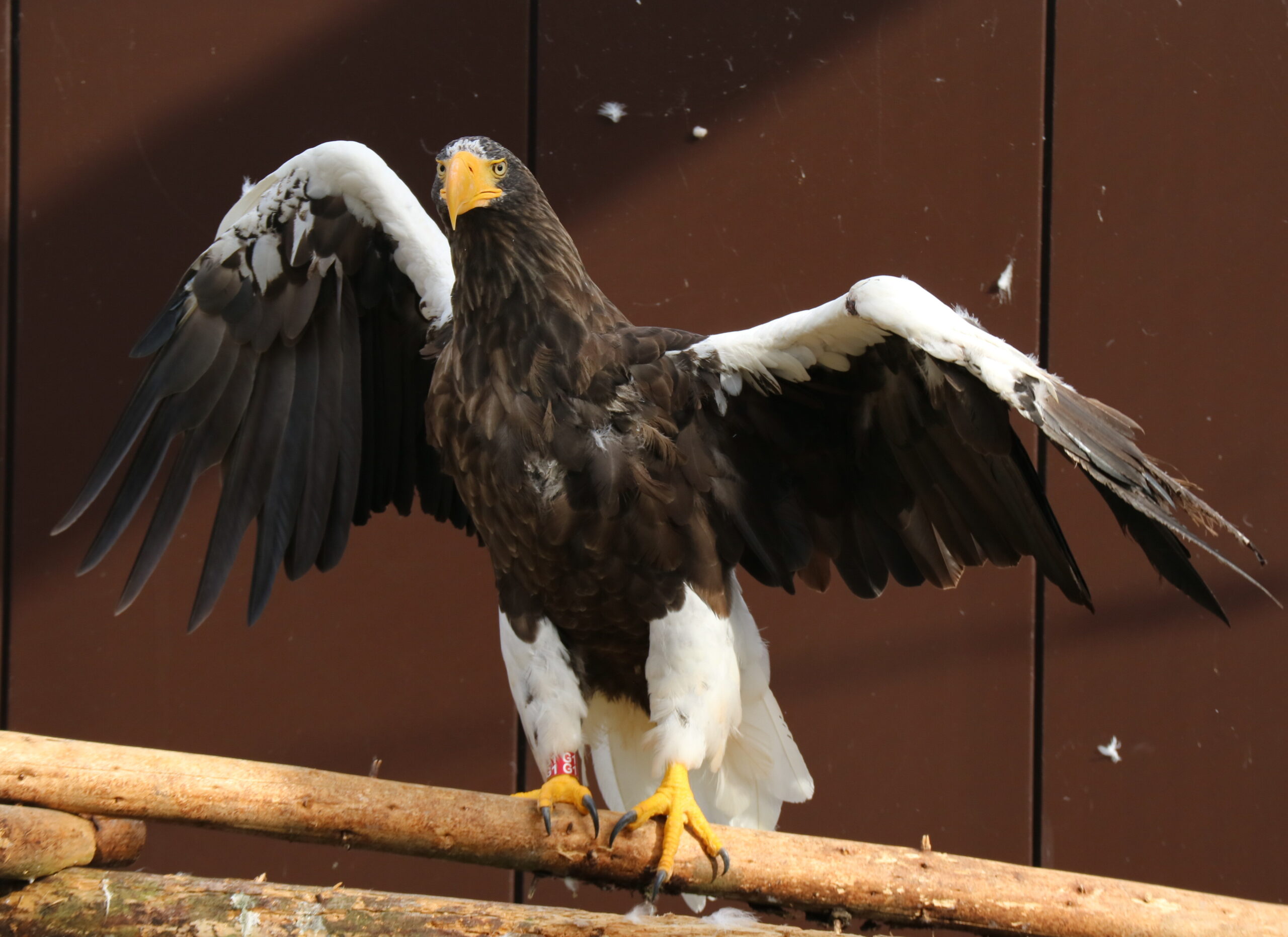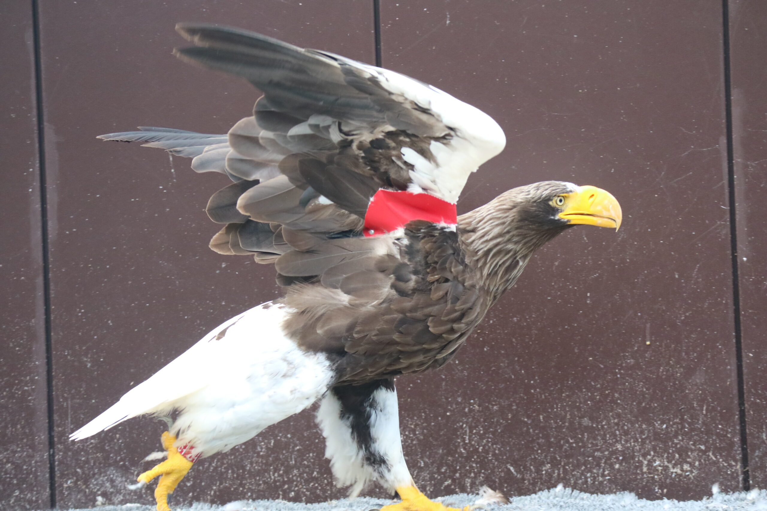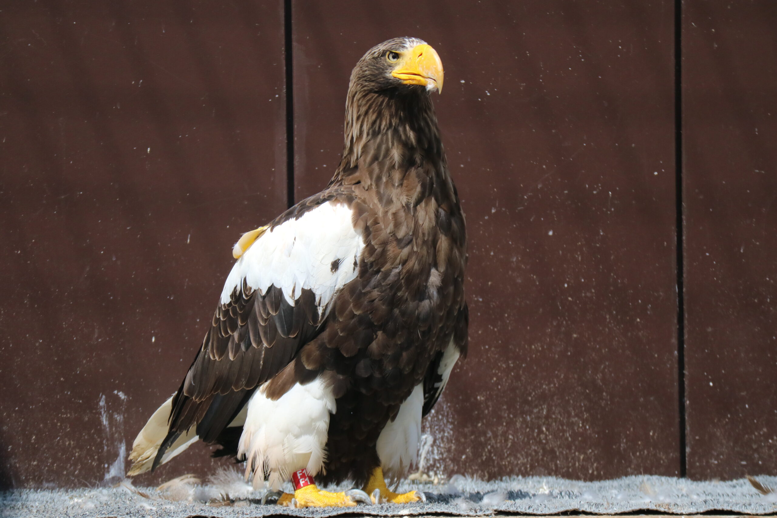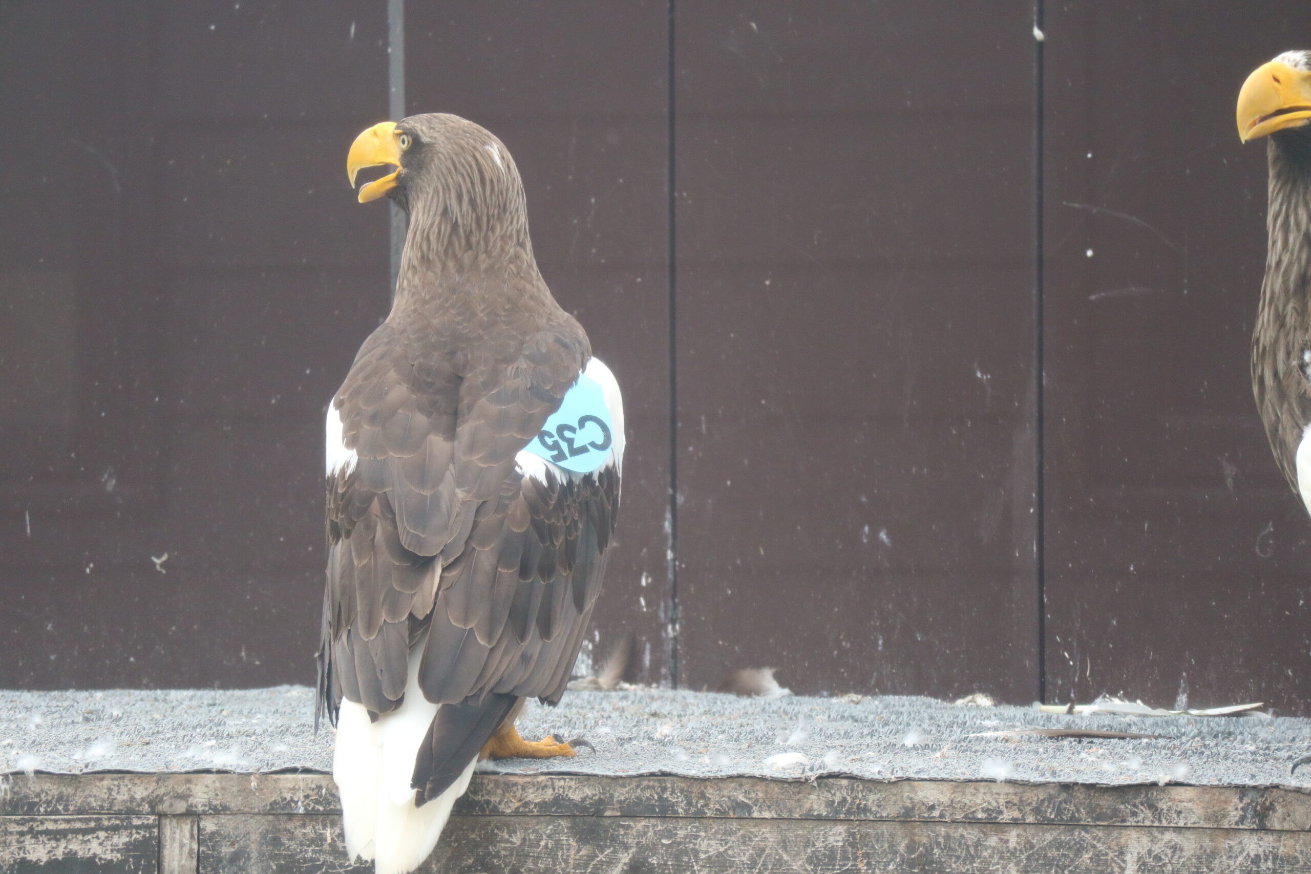 保護当時の幼鳥の頃から現在まで気が強く、堂々としているオオワシ。