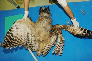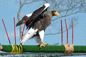 猛禽類医学研究所は、感電事故の発生した箇所や発生する可能性のある場所において、より効果のある対策ができるよう感電事故の原因究明を行い、分析に基づいた感電防止器具の開発や大型猛禽類に対する有効性の検証を実施しています。検証実験の結果、安全性と効果の認められたものは電力会社などと協議を行いながら感電事故防止に取り組んでおり、現在は全国で2700ヶ所近くに設置をし、設置した場所で感電事故が発生していないことを確認しています。