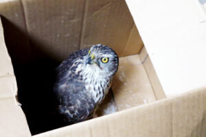 その日の昼頃、新聞で紹介されていた場所の近くで、一羽のオオタカが保護され、センターに運び込まれてきました。身体の特徴から、記事で取り上げられていたタカと思われました。