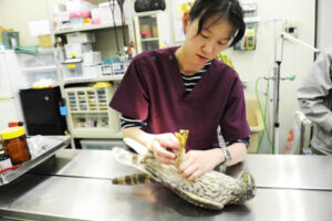 秋から春先にかけ、センターには若いタカが何羽も餌を捕れずに運び込まれます。生態系の頂点で生活する彼らにとって、豊かな自然環境の存在は、まさに命綱といえるのです。