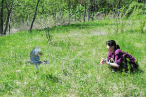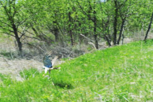 野生復帰にはもってこいの穏やかな快晴の日。すっかり緑色に衣替えした釧路湿原は、夏鳥達の囀りで賑わっています。 標識用の足環をつけたオオタカをそっと草原に立たせると、地面を勢いよく蹴って力強く飛び立ちました。