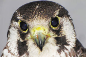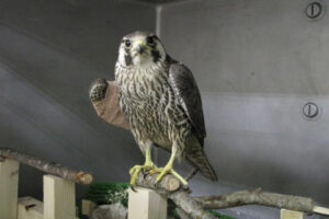 5月初旬、まだあどけなさが残る若いハヤブサがセンターに担ぎ込まれました。根室市内の国道脇でカラスに襲われていたとのことで、比較的元気はあるものの、右翼に大きな外傷を負っていました。
