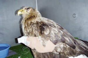 2008年4月27日に知床半島で発見され、保護されました。骨折はしていませんでした。広範囲の皮膚に火傷と思われる創傷がみられ感電事故の疑いがあります。