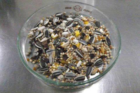 シメは主に種子を食べます。太いくちばしで堅い木の実や草の実を割って食べています。特にヒマワリの種が好きらしく、最初に無くなってしまいます。