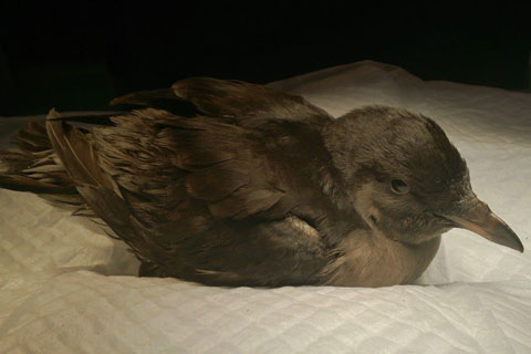 今年は海鳥の収容が後を絶ちません。先日お伝えしたコアホウドリを皮切りに、その後も続々と海鳥の収容がありました。8月の半ばには、珍しい海鳥がビニール袋に入れられて、センターにやってきました。黒く丸い小さな背中、短い嘴(くちばし)と白いお腹、嘴の基部にささやかな突起…さて誰でしょう?