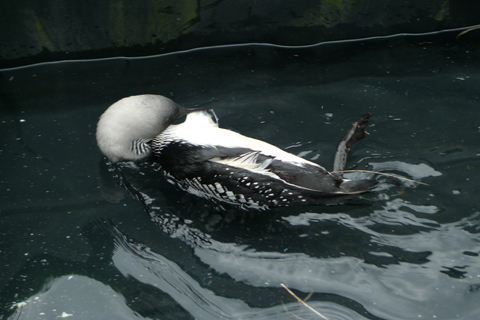 元気はあったので大きめのバットに水を張り、自分で羽繕いができる状況を整えました。すると自分で羽をしっかり手入れし、2日後にはちゃんと水に浮かび、潜って生きている魚を捕れるほどに回復しました。