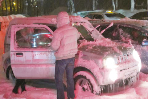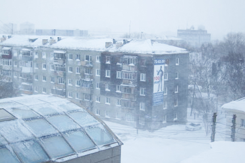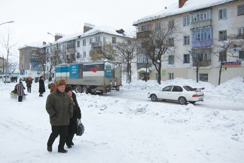 空路訪れたサハリン州(旧樺太)の州都、ユジノサハリンスク市(旧豊原)は、猛烈な吹雪に見舞われていました。レストランの駐車場では、食事中に雪に埋もれてしまった車を懸命に掘り起こす市民の姿が。。。
