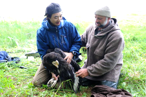 毎年、オオワシ達と同じように日露間を渡りながら行ってきた共同調査も、今年で11年目を迎えました。お互いを知り尽くした間柄だこそ、手早く正確に作業を進めることができ、雛への影響を最小限に抑えつつ有意義な情報を手にすることが可能なのです。
