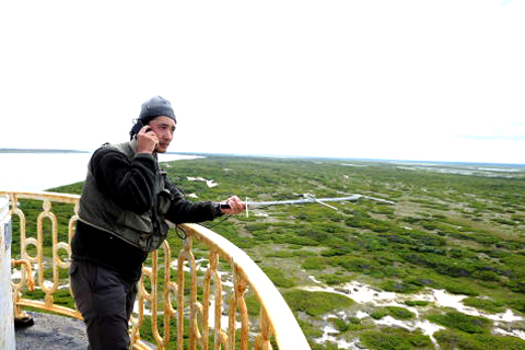 北サハリンは平坦な地形が多く、高いところに上がると広範囲の電波を受信することができます。今回はオホーツク海に面した、高さ数十メートルの古い灯台にも登って調査。合計6羽のオオワシからの電波を受信し、その所在を明らかにすることができました。