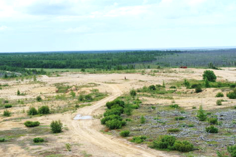豊かな野生が息づく北サハリンですが、残念ながら着々と自然破壊は進んでいます。砂地を覆う薄い表土に、特殊な植物が辛うじて根付くツンドラ。高いところから観ると、近年の天然資源調査や石油天然ガス開発によって表土が剥がされ、荒廃が年々進行している様子がよくわかります。