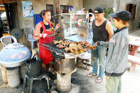 アヒルの焼き鳥には挑戦しました。頭も足も食べるそうです。暑い中、これまた熱い作業をしているのに、焼いているお姉さんは涼しげです。ラオス人は穏やかで親切な人が多く、色々説明してくれました
