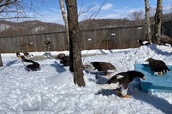 ケージ内はワシ達が過ごしやすいように、手作業で除雪を行います。