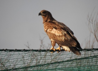 野生のオジロワシがリハビリケージの上にやってきていました。