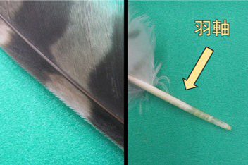 一方、歯を持っていない鳥類の場合は羽をむしり取ります。よって、羽軸の表面は写真の右のような、つるりとした状態になります。