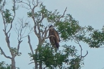 そして高い樹に綺麗に着地したのです。私たちは幼鳥の元気な姿を見ることができて一安心。