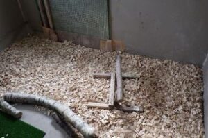 センターへ着いたら、早速飼育部屋のチップを入れ替えました。