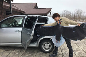 オオワシをケガさせないように安全運転で運びます。