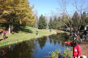 釣り堀のオーナーさんから、魚の釣り方のレクチャーを受け作戦開始です!
