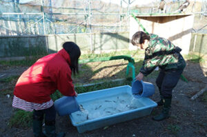 釣り公園から釣った魚を持ち帰り、ワシ達にプレゼントしました!