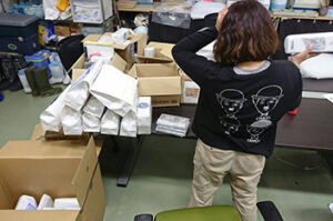想像以上の反響に、スタッフ一同大慌てでマグとカレンダーを梱包していきます。