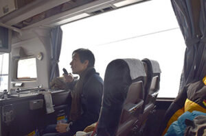 バスは、釧路駅を出て風連湖に向かいました。この湖では、「氷下待網漁」という伝統的な漁が冬に行われます。