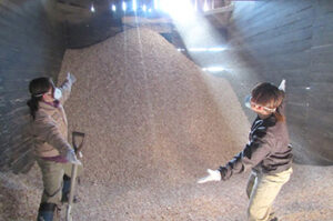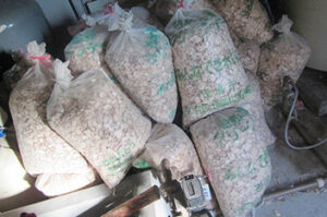 センターに到着した後、ウッドチップを通気性の良い袋に詰め替え、ボイラー室に置いて乾燥させます。