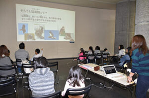 今回は展示の他にも、ワシの爪の石膏色塗り体験、ワシの塗り絵を行いました。