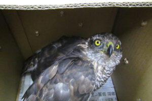 幼鳥の羽毛がまだ残っており、どうやら去年生まれた若いオオタカのようでした。若い個体ほど狩りや周辺に注意を払う経験が不足しているので、衝突事故が増えるのです。