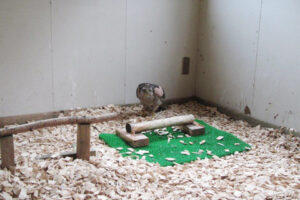 自立歩行ができ自分で置き餌を食べることができるため、広いケージに移されました。オオタカが空を飛び回れるくらい良くなることを願うばかりです。
