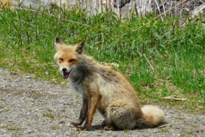 キタキツネがやってきました。体の大きさから、去年生まれた子だと思われます。あまりよろしくないことに、警戒心が少し薄いようです。人を見ても逃げずにいました。かわいいと感じるのは禁じえませんが、複雑な気持ちがします。