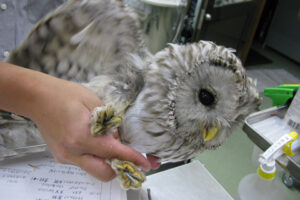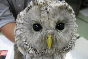 2014年8月、センターに収容されたのはハート形の顔に真黒な目がチャームポイントのエゾフクロウです。アイヌ語ではクンネレクカムイと呼ばれ、闇に鳴く神を意味するそうです。