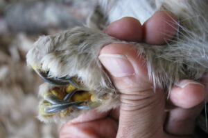 エゾフクロウはフクロウという種の亜種に当たります。フクロウは足先まで羽毛が生えているのが特徴です。