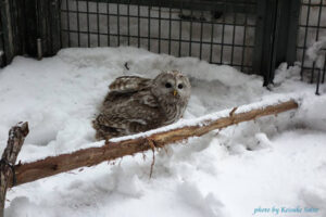野生復帰できなかったエゾフクロウは2015年1月25日に円山動物園に移譲されました。新しい環境に早く慣れてくれることを願っています。
