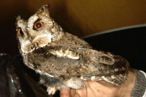 今月中旬、コノハズクの幼鳥が一羽保護されてきました。漢字では木葉梟、とても小さなフクロウです。