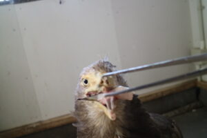 しかし、義嘴を着けたままにすると、装着部の皮膚や口腔粘膜が擦れて傷ができるおそれがあるため、個体の様子を見ながら日によって義嘴を着けたり外したりしています。