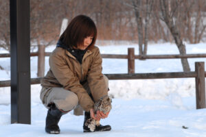 カラスなど他の鳥に襲われることがないよう、日が沈むのを待って放鳥しました。あっという間に林の中へ飛び去る後姿に、頼もしさを感じつつも、心からのエールとこれからの無事を祈りました。