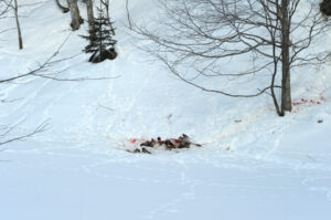 (写真:ハンターによって野外に放置されたシカの射殺体. 2011年12月. 本別町)