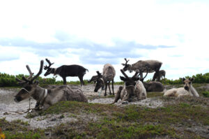 (写真:サハリン北部の先住民族によって飼育されているトナカイ)