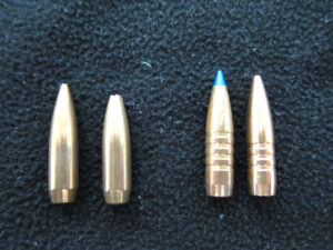 (写真:左2つは鉛ライフル弾、右2つは無毒の銅弾。素人には見分けが付きにくい)