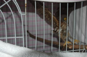 2mほどの高さがあるケージの中で、リハビリを開始しました。飛び上がったり、飛び降りたりしながら、衰えた筋力の回復に励みます。その後、室内で試験飛翔を行った結果、広い空間を勢いよく飛べるようになったことがで確認できました。 アオバズクはすでに北海道よりも南方に渡っている季節。現在、本州以南で放鳥するか、釧路で越冬してもらうかを検討中です。