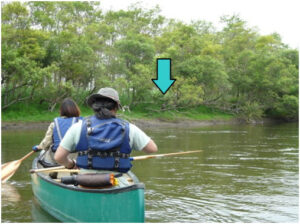 釧路湿原で活動されているカヌーガイドさん達から、「2週間程前から様子のおかしいオジロワシの幼鳥がいる」との連絡が環境省に入りました。親ワシが近くにいるとの情報があったことから、しばらくの間、近くを通りがかる度に様子を見てもらっていましたが、「今日は1mまで近寄っても逃げる様子がない」とのこと。話の内容から緊急性が高いと考え、小雨の降る中、ガイドさんの案内のもとカヌーで現場に向かいました。