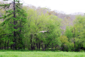 飛び立ったオジロワシがまず目指したのは、一際目立つエゾマツの大木。見守る私達の心配をよそに、行き先をしっかりと見据えてグングン高度を稼いで行きます。